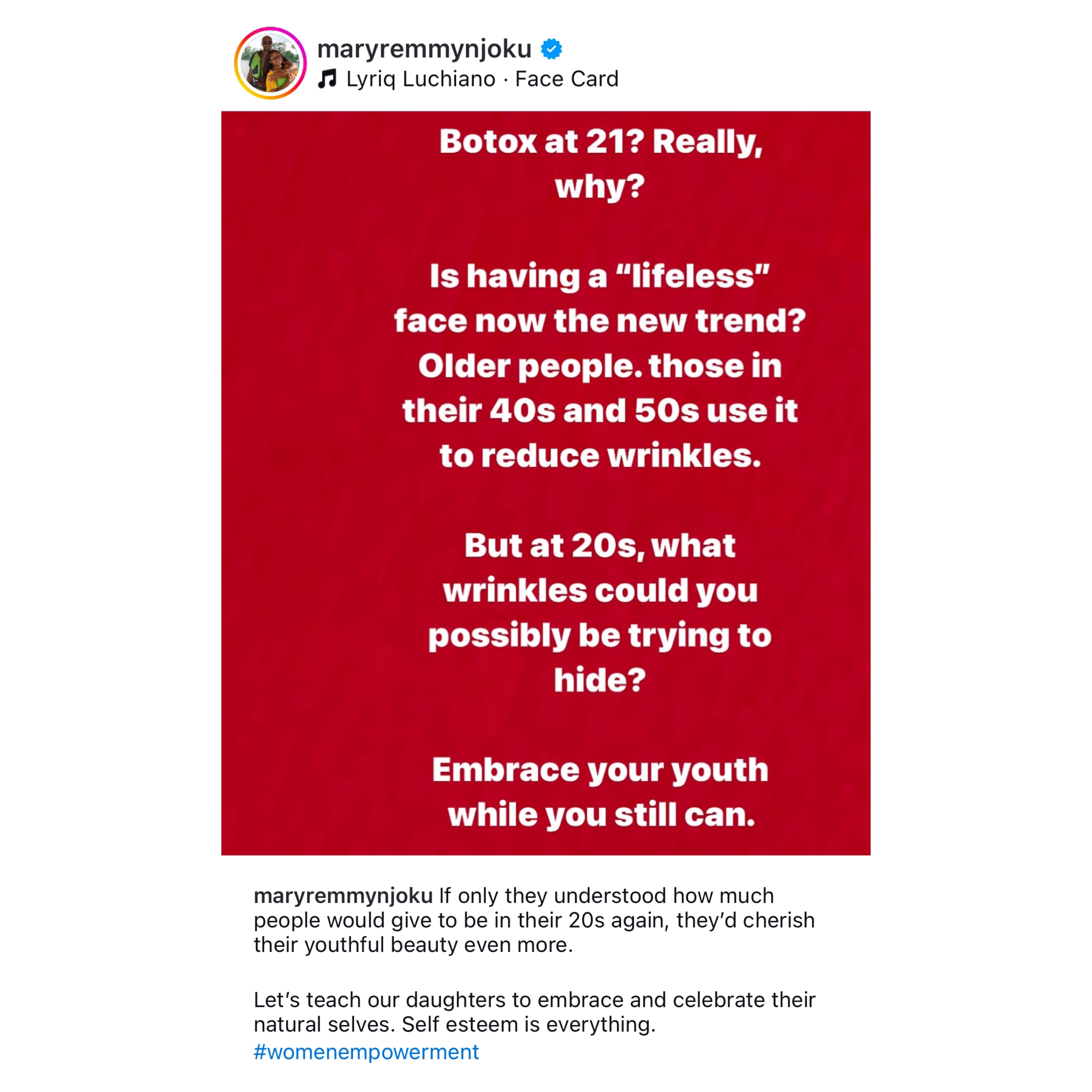 What wrinkles could you possibly be trying to hide? – Actress Mary Remy Njoku frowns at 21 year old girls getting Botox
