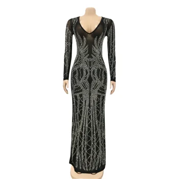 Sparkly Crystal Rhinestone Bodycon Maxi Dress Women Wedding Evening Mesh Sheer Clubwear Christmas Party Long Dress Vestido LongoSparkly Crystal Rhinestone Bodycon Maxi Dress Women Wedding Evening Mesh Sheer Clubwear Christmas Party Long Dress Vestido Longo